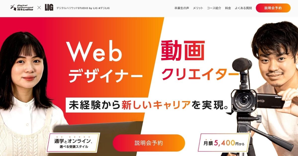 デジタルハリウッドSTUDIO by LIGはWeb制作会社「LIG」が運営するWebクリエイターを育成するスクール。