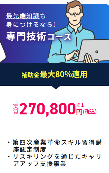 | 専門技術コース | 910,800円 | 実質270,800円〜 |