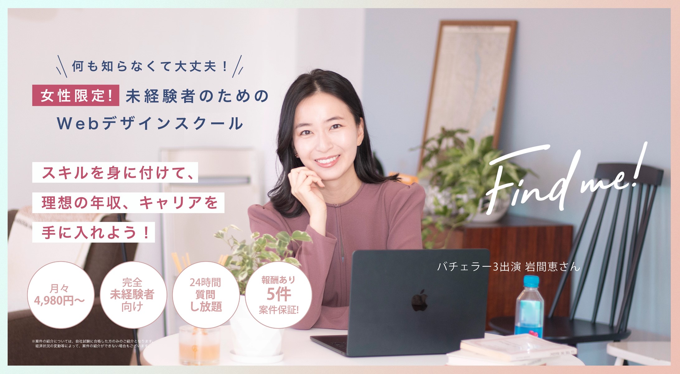 Find me!(ファインドミー)は月額4,980円(税込)~Webデザインを学べる女性限定のオンラインスクールです。