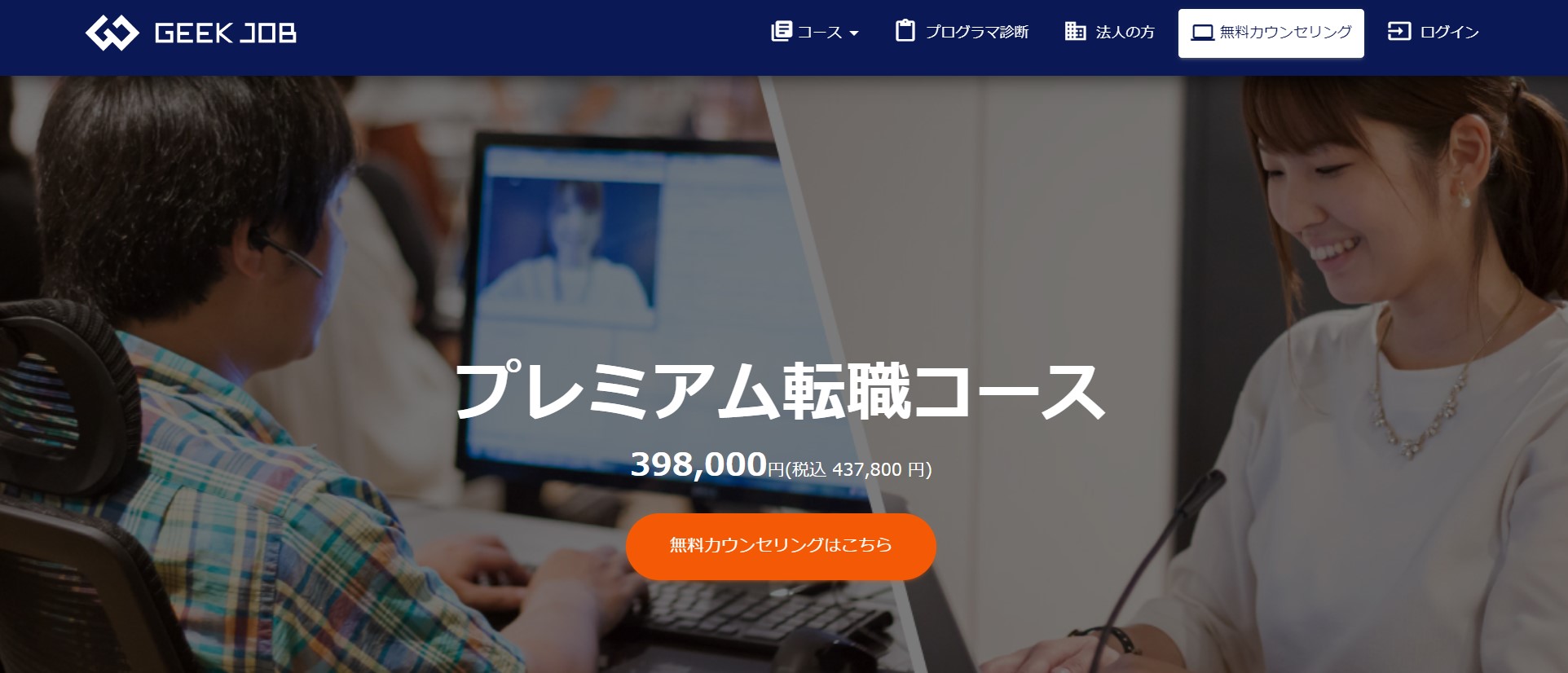 GEEK JOBプレミアム転職コースは未経験からWEBエンジニアとして就職を目指す転職者の就職支援サービスです。