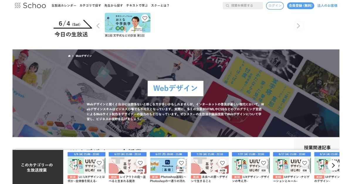 たくさんのスキルアップや教養講座を展開しているSchooですが、Webデザインやデザインスキルに特化した講座も充実しています。